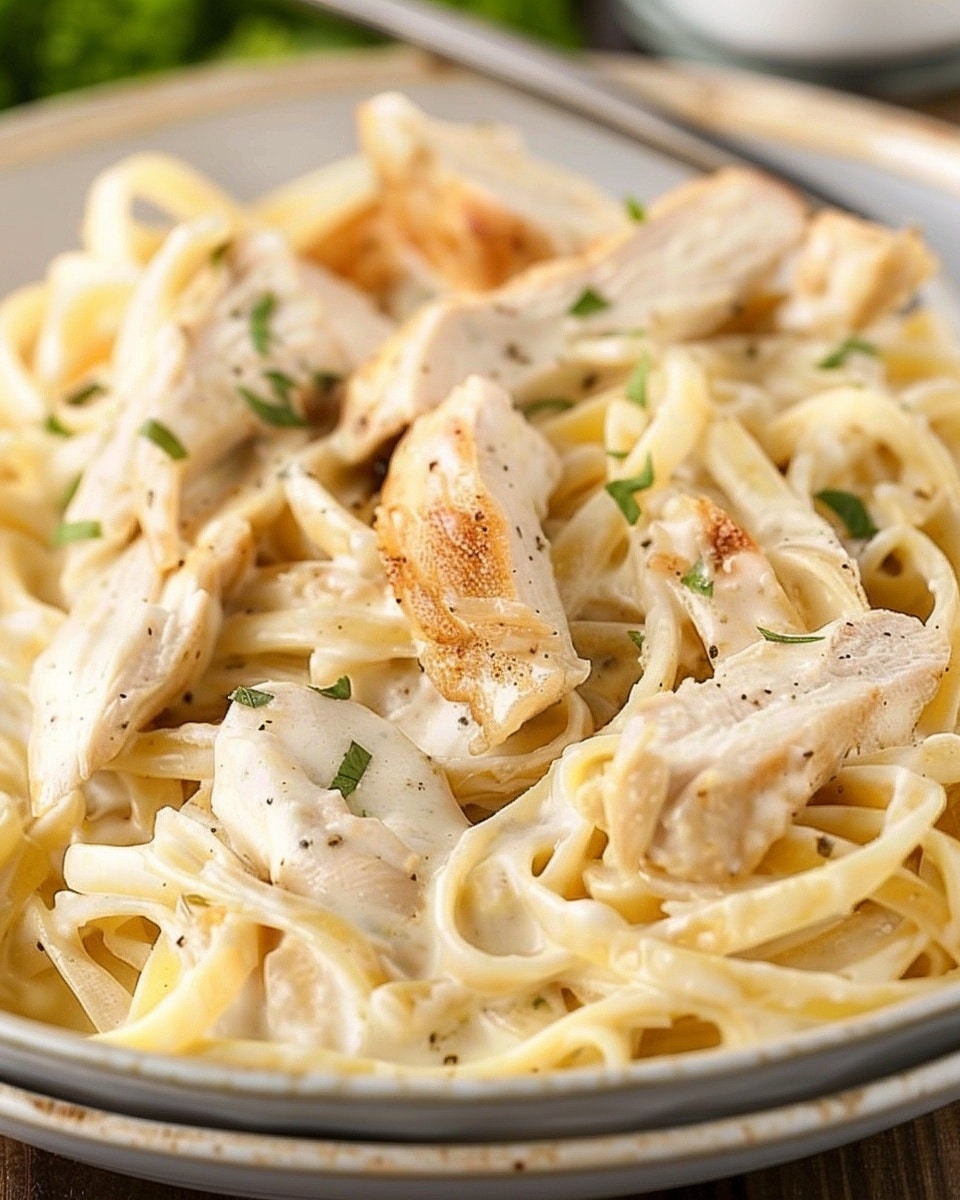 Sometimes I swap the chicken for shrimp or add sautéed mushrooms or spinach for a little veggie boost. For a spicy kick, I stir in a pinch of red pepper flakes into the Alfredo sauce. I’ve also tried it with whole wheat pasta or gluten-free noodles, and the sauce pairs well with both.