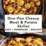 This one-pan cheesy meat and potato skillet is a hearty, comforting meal made with seasoned ground meat, tender golden potatoes, and a generous layer of melted cheese. It is an easy weeknight dinner that comes together in a single skillet with minimal cleanup.