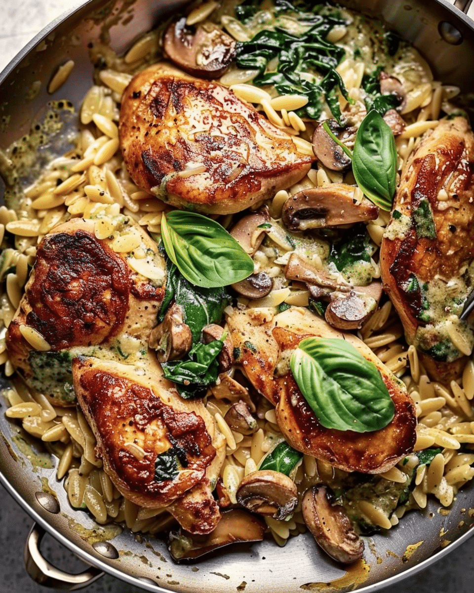 This ONE-PAN Creamy Chicken Orzo is a comforting and flavorful dish made with juicy chicken, tender orzo, and a rich garlic-Parmesan cream sauce — all cooked in a single skillet. It’s quick, satisfying, and perfect for weeknight dinners with minimal cleanup.