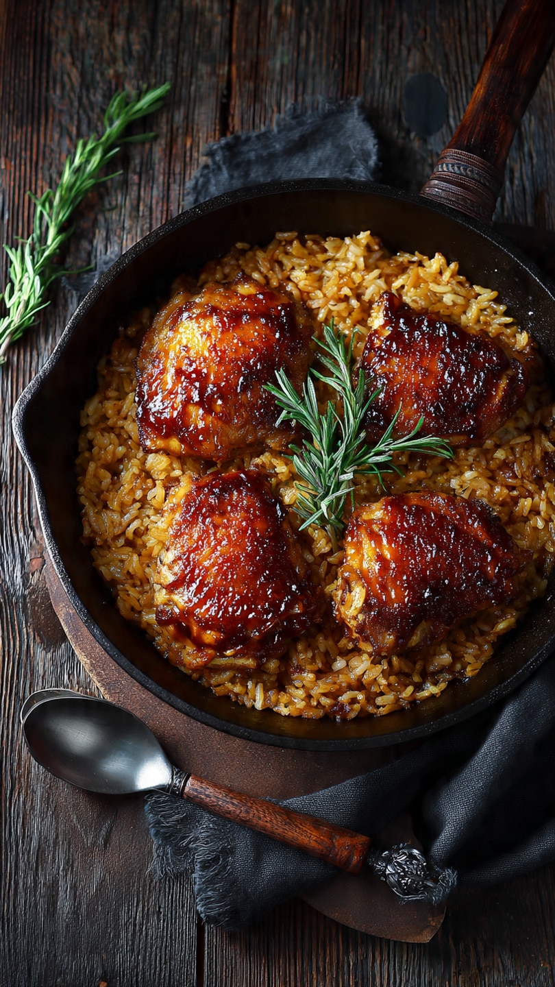 A comforting one-pan dinner made with tender chicken, fluffy rice, and a sweet-and-smoky honey BBQ sauce, all cooked together for maximum flavor with minimal cleanup.