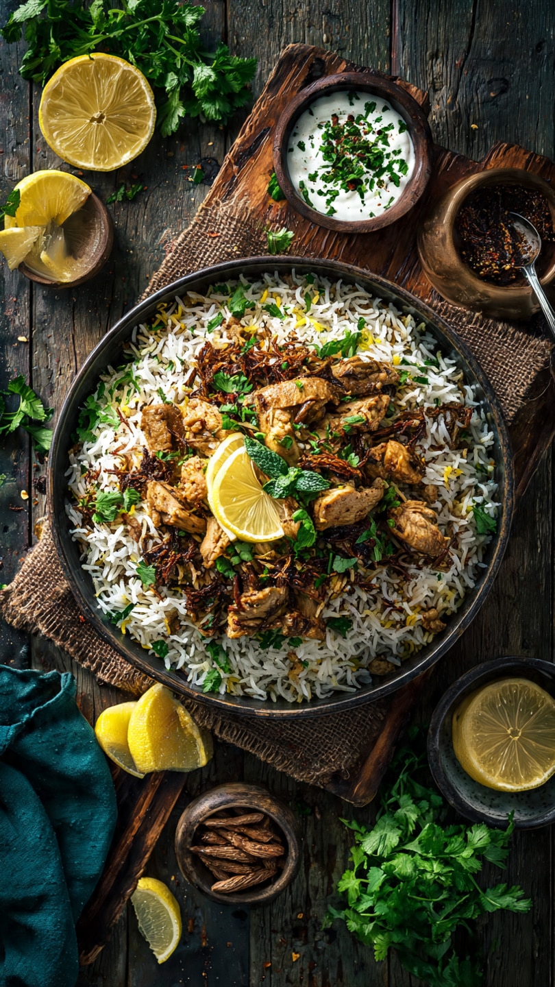 I sometimes add sliced bell peppers or carrots for extra color and texture. When I want a bit of heat, I sprinkle in cayenne pepper. I also like topping the finished dish with sliced cucumbers, tomatoes, and a drizzle of garlic yogurt sauce. For a lighter option, I use chicken breast instead of thighs.