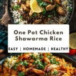 A bold and comforting one-pot chicken shawarma rice infused with warm Middle Eastern spices, tender chicken, and fluffy basmati rice, all cooked together for a flavorful and easy weeknight meal.