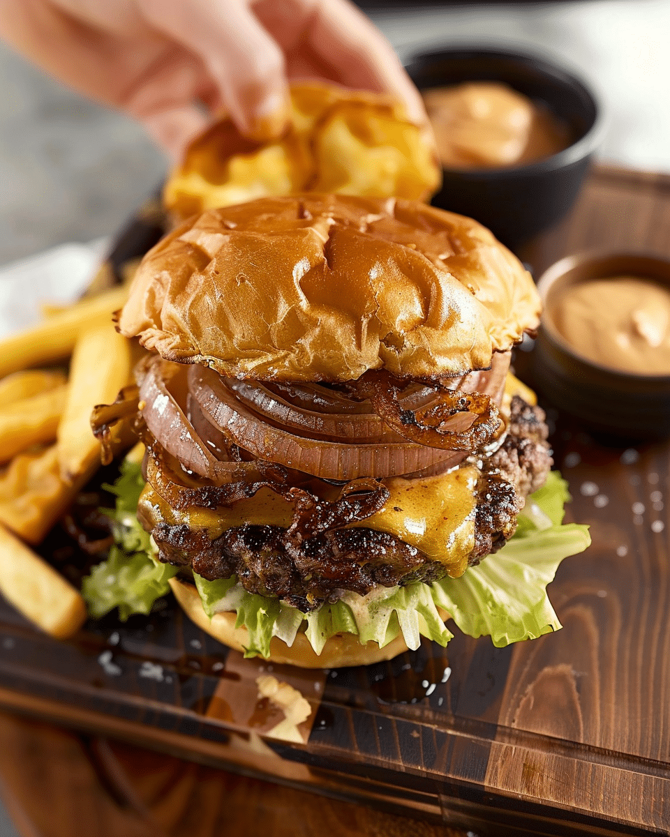I love this burger because it skips the bun without sacrificing any of the flavor. The caramelized onions act as both wrapper and flavor booster, and when they crisp up around the beef and cheese, it’s next-level good. It’s a great low-carb or keto-friendly option that still feels indulgent and loaded with texture.