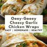 These Ooey-Gooey Cheesy Garlic Chicken Wraps are a comforting and quick meal filled with melty cheese, savory garlic chicken, and toasted tortillas. Perfect for lunch, dinner, or snacks, they’re packed with flavor and ready in under 30 minutes.