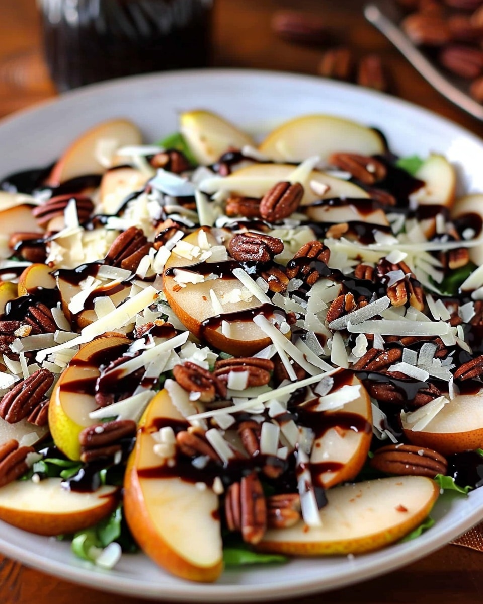 Pear and Candied Pecan Salad with Balsamic Vinaigrette is one of those salads I make when I want something light, elegant, and bursting with flavor. Sweet pears, crunchy candied pecans, and crisp greens all come together under a tangy balsamic vinaigrette. It’s fresh, vibrant, and always makes an impression—whether I’m serving it as a side dish or enjoying it as a full meal.