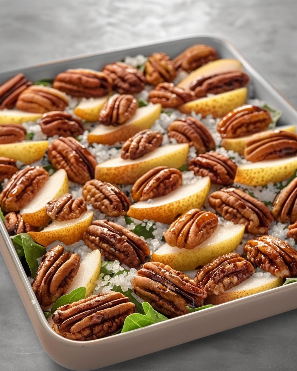 - Homemade candied pecans elevate the flavor—toast with sugar and cinnamon in a pan.