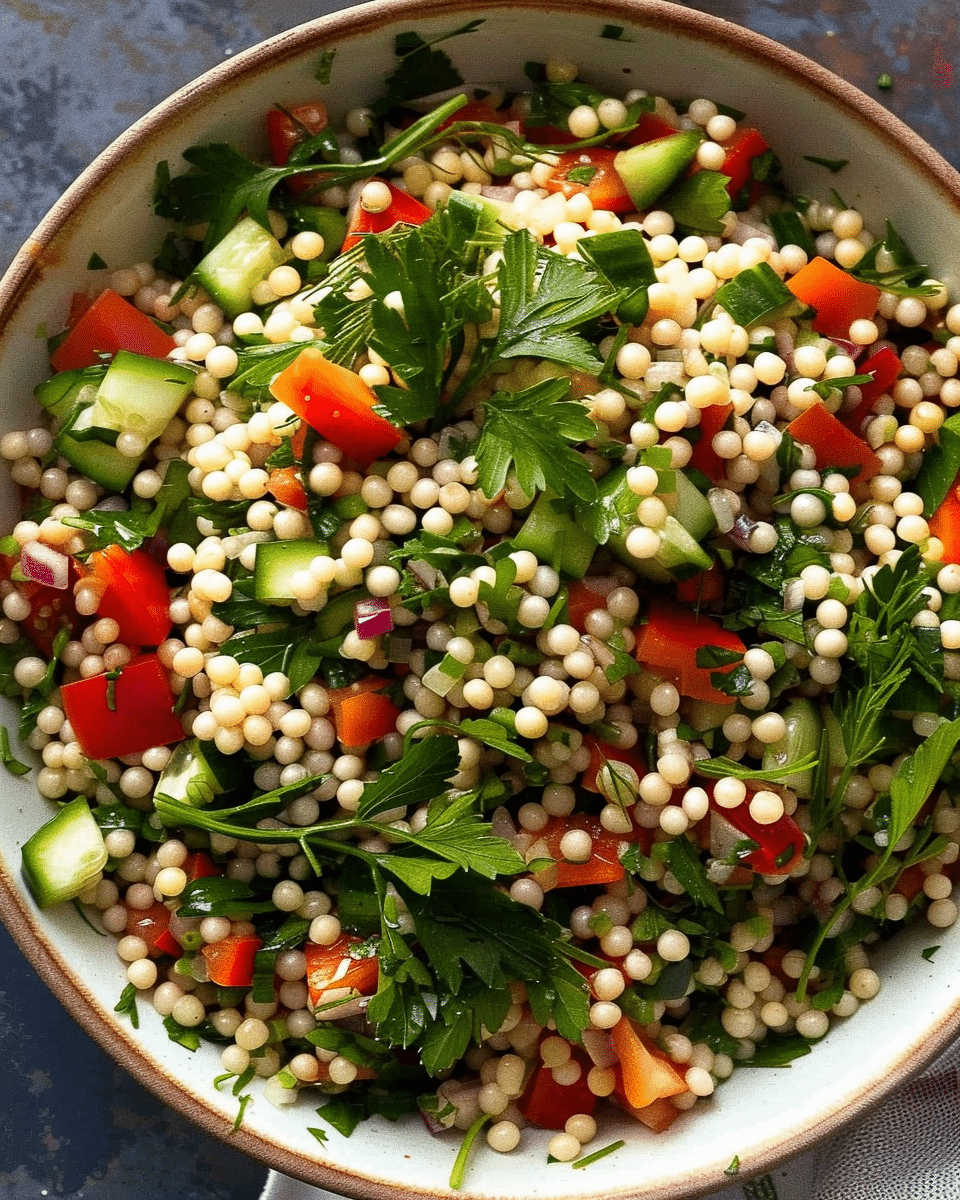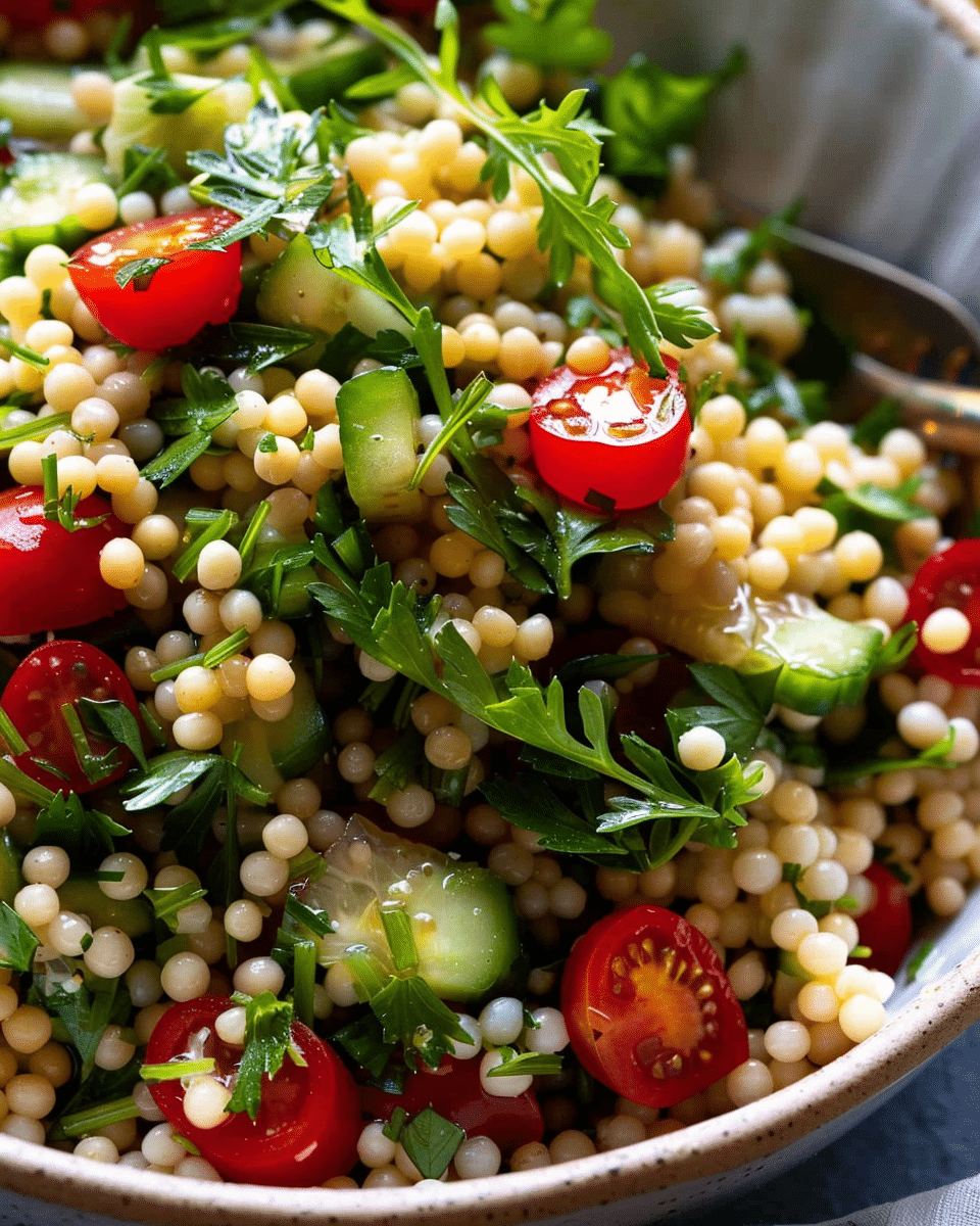 Pearl couscous salad is a fresh, flavorful, and satisfying dish made with chewy couscous, crisp vegetables, herbs, and a zesty lemon dressing. It’s perfect as a side dish or light main, ideal for meal prep, and adaptable to the seasons.