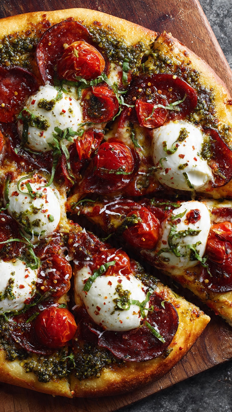 Pepperoni and Burrata Pizza with Pesto is my go-to when I want to turn pizza night into something unforgettable. This recipe brings together spicy, crispy pepperoni, creamy burrata, and a swirl of vibrant basil pesto—all on a crispy crust. It’s rich, savory, fresh, and indulgent all at once, and every bite is packed with flavor and texture.