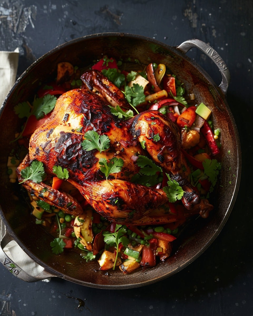 I sometimes use chicken thighs or drumsticks instead of a whole chicken and adjust the cooking time. When I want extra heat, I add a pinch of cayenne pepper. I also enjoy grilling the chicken for a smoky twist on the flavor.
