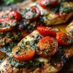 Pesto Bruschetta Chicken combines juicy chicken breasts with bold basil pesto and a fresh tomato bruschetta topping. This light yet flavorful dish is perfect for weeknight dinners or special occasions.