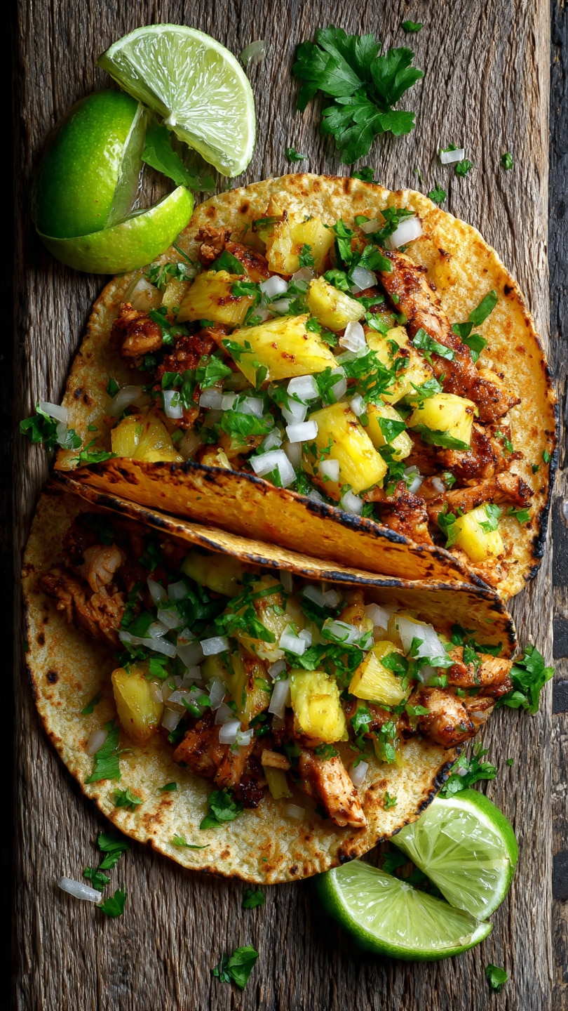 I love how these tacos combine sweet pineapple with savory chicken and bright, fresh toppings. The contrast of warm, saucy filling with cool crunchy slaw or avocado makes every bite super satisfying. These tacos are also easy to prep ahead and customize based on what I have on hand. Whether I’m feeding a crowd or just craving something fun and flavorful, these never disappoint.
