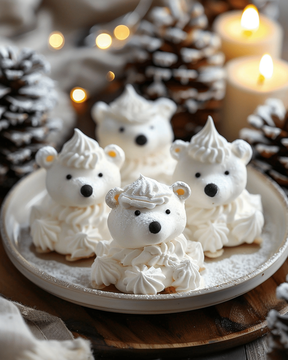 Polar Bear Meringue Kisses are sweet, crisp, and impossibly cute little treats that I love to make during the winter season. These airy, melt-in-your-mouth meringues are piped into charming bear faces and decorated with simple touches to bring them to life. Light, crunchy, and subtly sweet, they make the perfect holiday gift or dessert table centerpiece.
