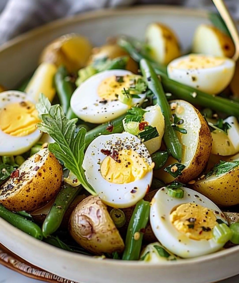 Potato and Green Bean Salad with Hard-Boiled Eggs is a hearty, refreshing twist on classic potato salad, combining tender potatoes, crisp green beans, and creamy eggs in a light vinaigrette or creamy dressing. It’s a versatile side dish perfect for picnics, potlucks, or everyday meals.