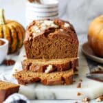 A moist and spiced pumpkin bread filled with cozy fall flavors like cinnamon, nutmeg, and cloves. Easy to make and perfect for breakfast, a snack, or dessert.