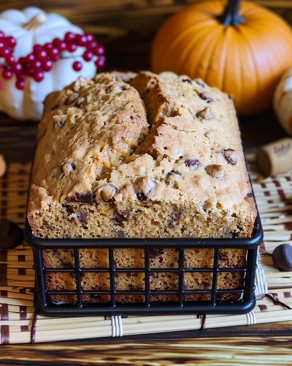 I love this recipe because it delivers that perfect balance between warm spice and sweet richness. The pumpkin keeps the loaf super moist without being heavy, and the chocolate chips melt into the soft crumb just right. It’s great for breakfast, dessert, or a midday snack — and it freezes beautifully, too. No mixer required, and it’s all in one bowl.
