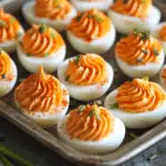 I love how these deviled eggs come together with just a few ingredients but look like I spent way more time on them than I actually did. The bright filling piped into pumpkin shapes gives off major fall vibes, and they’re always a conversation starter at any party. Plus, they’re naturally low-carb and full of flavor—perfect for both kids and adults. Whether I’m hosting or just bringing a dish, these always disappear fast.