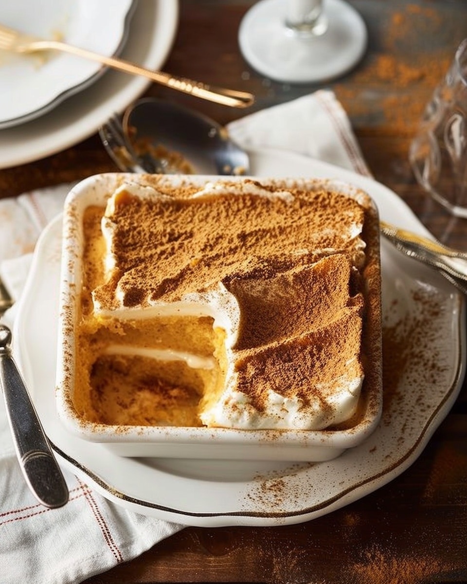 I cover and refrigerate the tiramisu for at least 4 hours or overnight — the longer it chills, the better the texture.