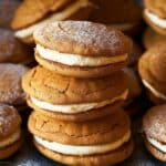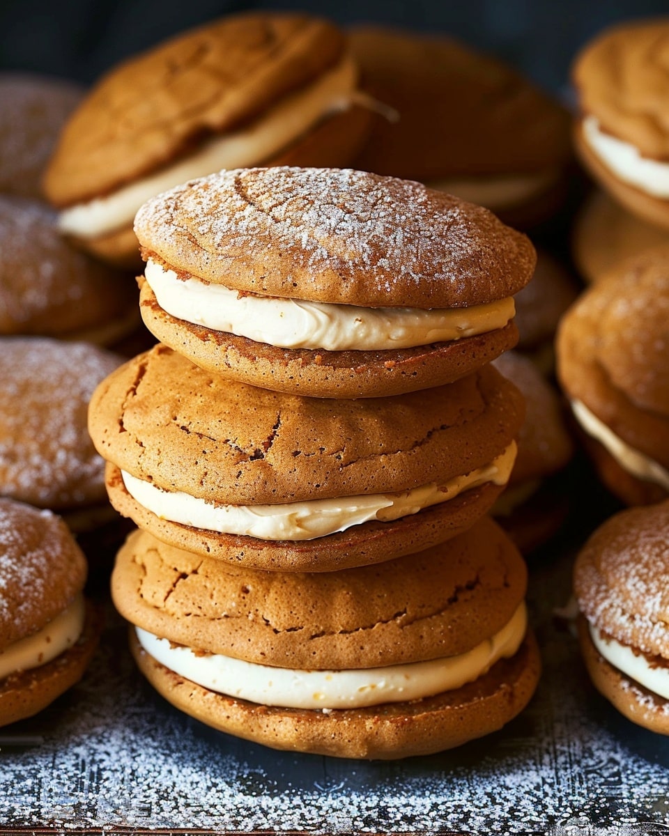 Pumpkin Whoopie Pies are soft, cake-like cookies filled with tangy cream cheese frosting — the perfect fall dessert. Spiced with cinnamon, nutmeg, and ginger, these handheld treats capture the cozy flavors of autumn. Ideal for Thanksgiving, Halloween, or anytime you crave a seasonal sweet!
