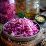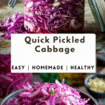 This Quick Pickled Cabbage recipe is an easy, no-fuss way to add tangy crunch and vibrant flavor to tacos, bowls, sandwiches, and more. Made with vinegar, sugar, and salt, it comes together in minutes—no canning required—and keeps well in the fridge for up to two weeks. A simple condiment with big impact.