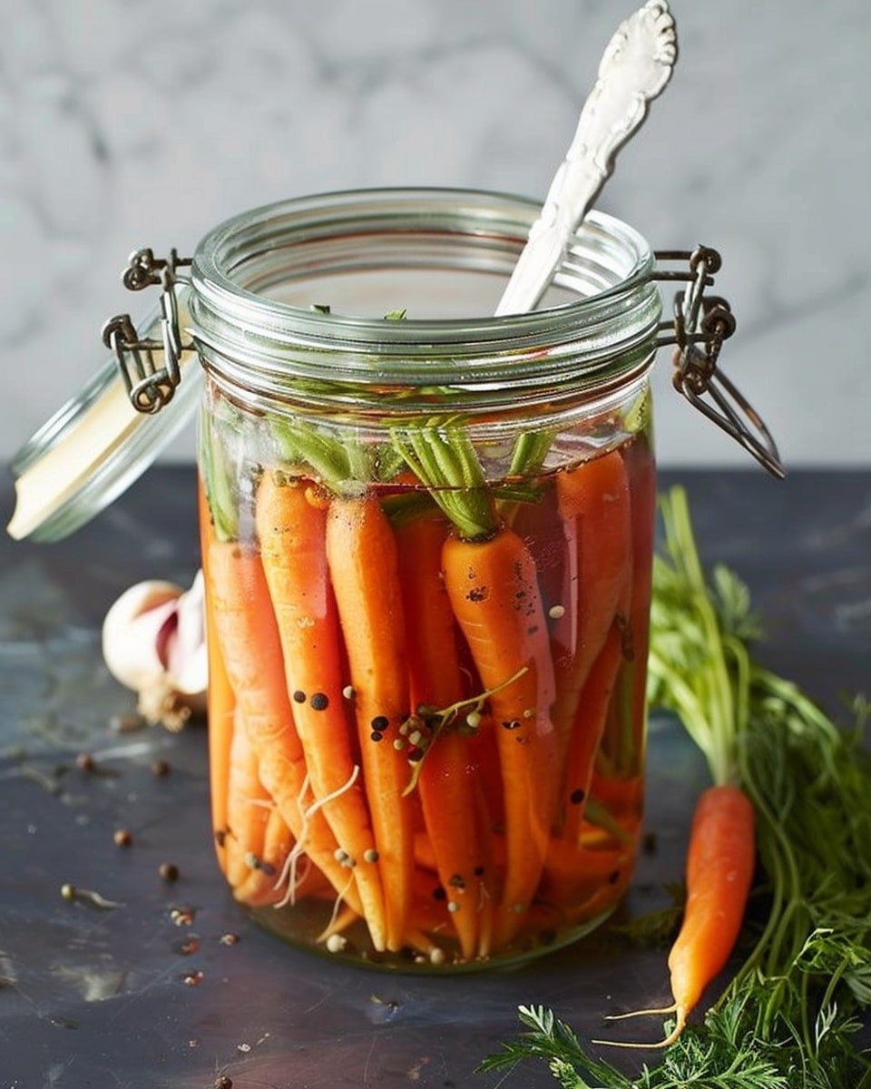 - Carefully pour hot brine over carrots in jars, ensuring they are fully covered.