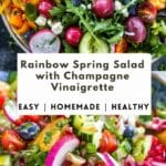 A vibrant and refreshing rainbow spring salad packed with crisp vegetables and tossed in a light champagne vinaigrette for a colorful and nourishing dish.