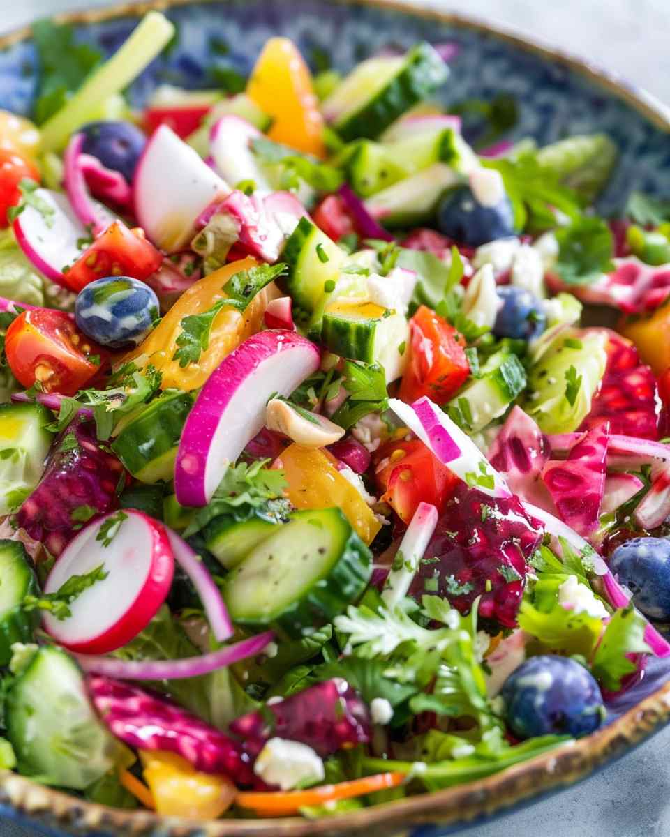 I love how this salad feels both nourishing and visually appealing. The variety of fresh ingredients creates a mix of flavors and textures that keeps every bite interesting. I also appreciate how the champagne vinaigrette adds a delicate tang without overpowering the natural taste of the vegetables.