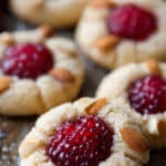 These Raspberry Almond Thumbprint Cookies combine a buttery, tender shortbread base with a fruity raspberry jam center and a hint of almond flavor. Perfectly crisp on the edges and soft in the middle, they make a beautiful treat for any occasion.