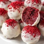 I love this recipe because it turns classic red velvet cake into easy-to-eat, mess-free bites. They look elegant and taste just as good as a slice of cake. I can decorate them however I want—drizzled, dipped, or sprinkled—so they’re super customizable for any occasion. They also hold up well in the fridge or freezer, which makes them a great make-ahead treat.