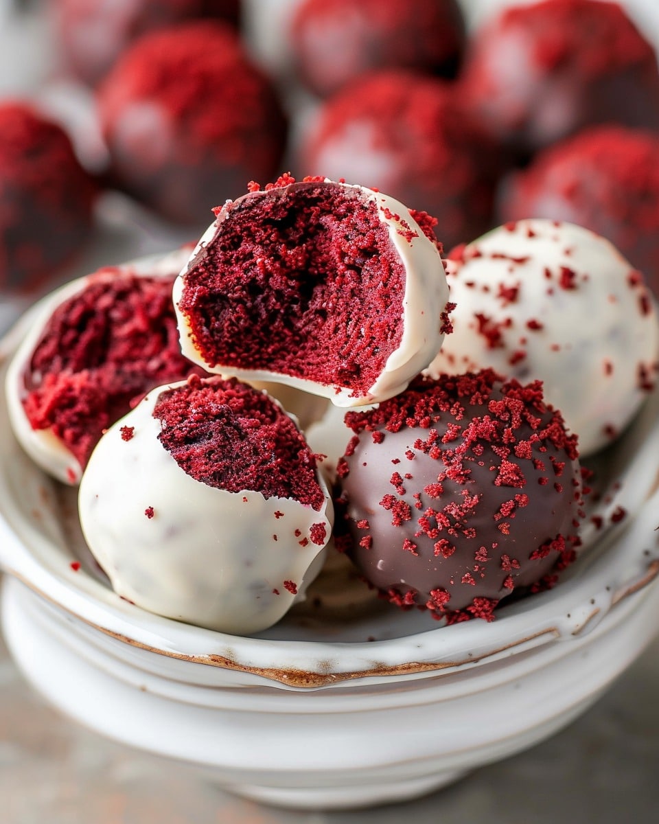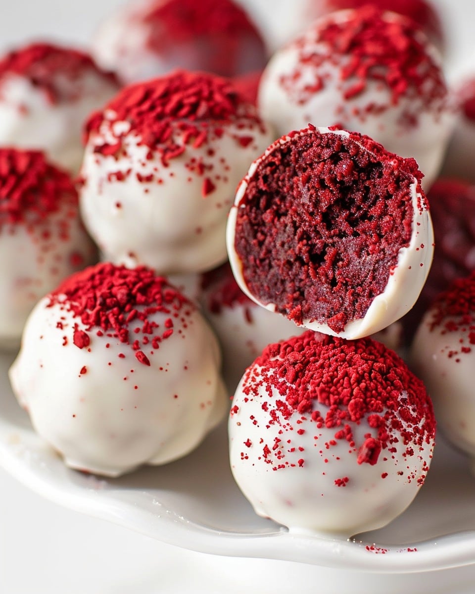 Red Velvet Cake Balls are bite-sized treats made by combining crumbled red velvet cake with cream cheese frosting, then dipping them in white chocolate or candy melts. They’re rich, festive, and perfect for parties, holidays, or gifting.