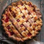 I sometimes mix strawberries with the rhubarb to create a sweeter, more balanced flavor. Adding a pinch of cinnamon or nutmeg gives the filling a warm depth that I really enjoy. If I want a crunchier topping, I replace the top crust with a crumb topping made of flour, sugar, and butter.