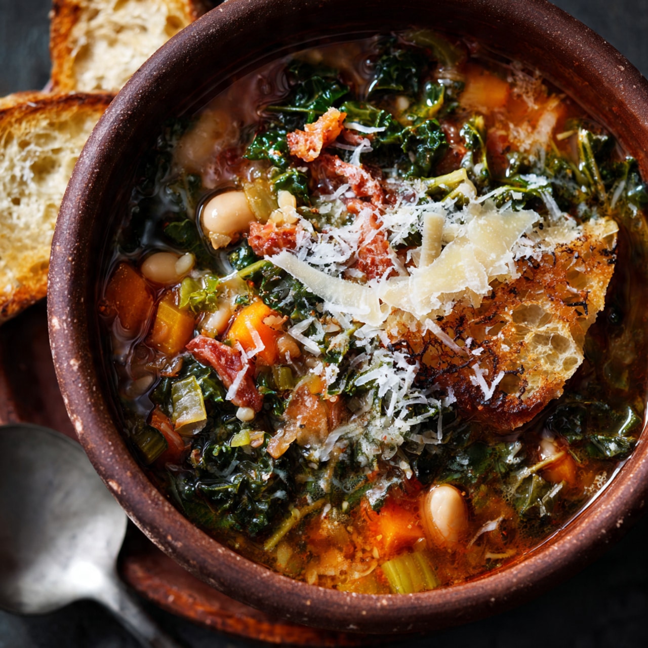 A hearty and rustic Italian vegetable and bread soup made with beans, greens, and simple pantry staples, creating a thick and deeply comforting meal that tastes even better the next day.