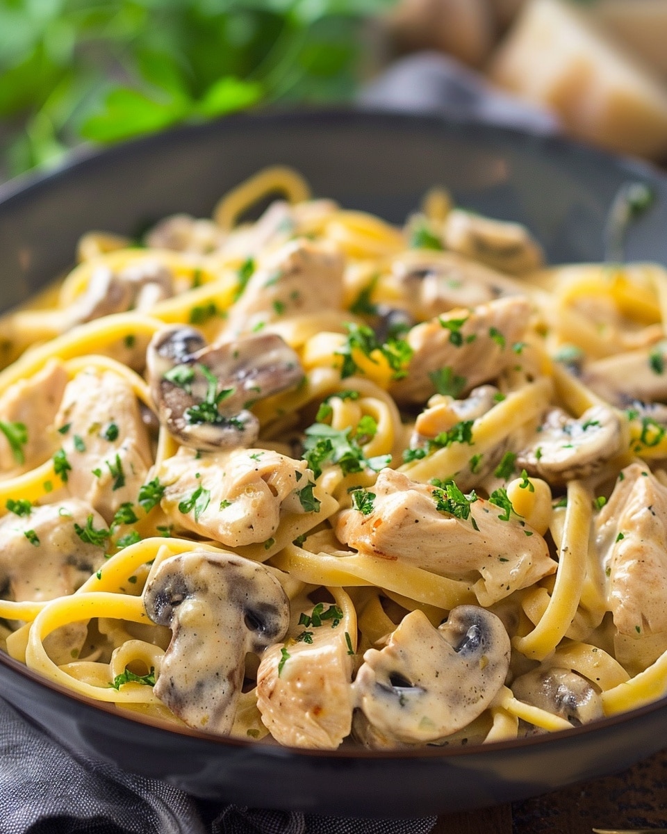 PrintRich Chicken and Mushroom Pasta in Velvety Cream Sauce