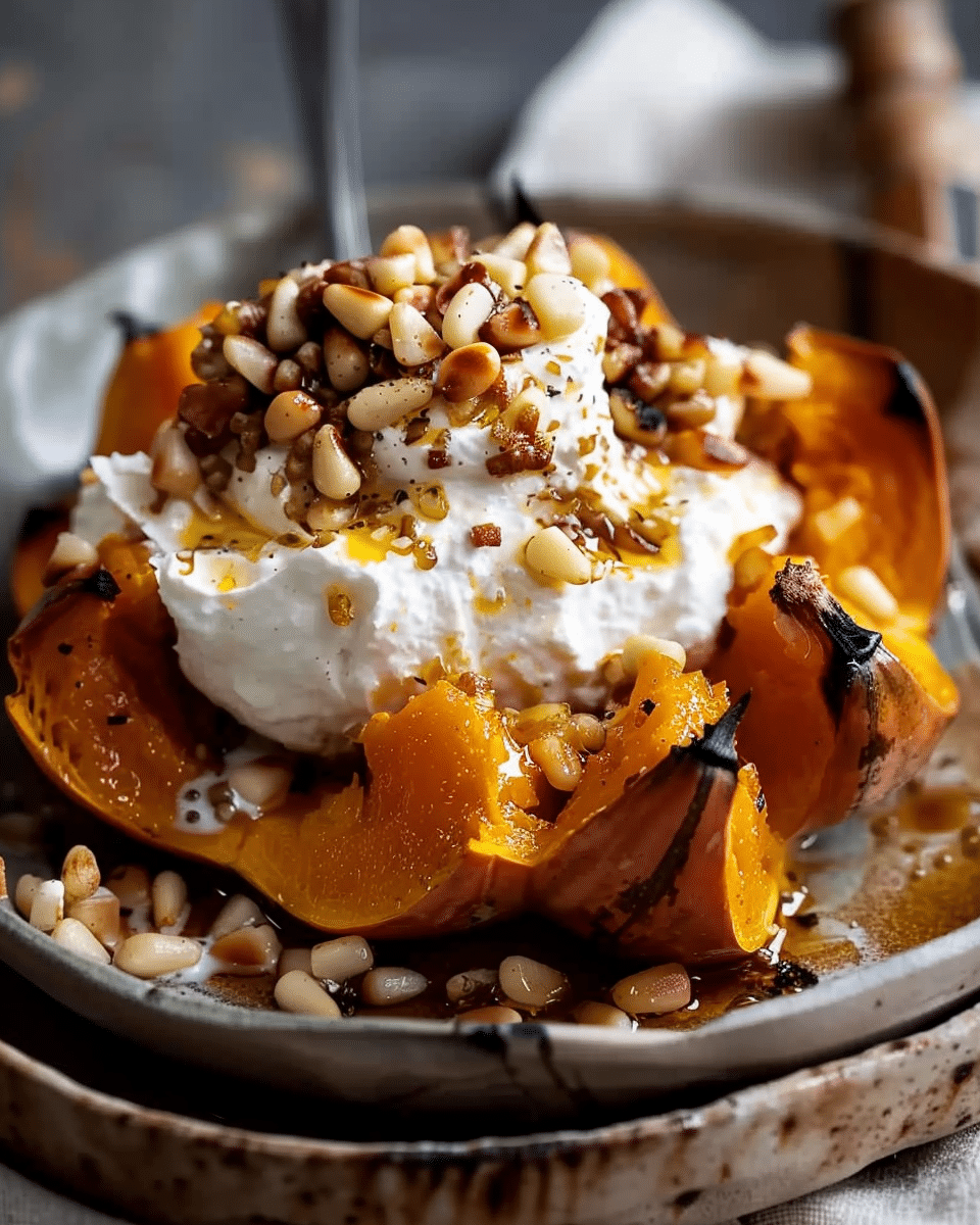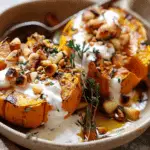 Roasted Pumpkin with Yogurt Sauce and Pine Nuts is a flavorful, fall-inspired side dish that pairs caramelized pumpkin with creamy yogurt and crunchy toasted pine nuts. Finished with herbs and olive oil, it’s an elegant yet simple plate for cozy meals or festive occasions.