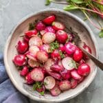 I sometimes add sliced onions or carrots to the pan so they roast alongside the radishes and add extra sweetness to the dish.