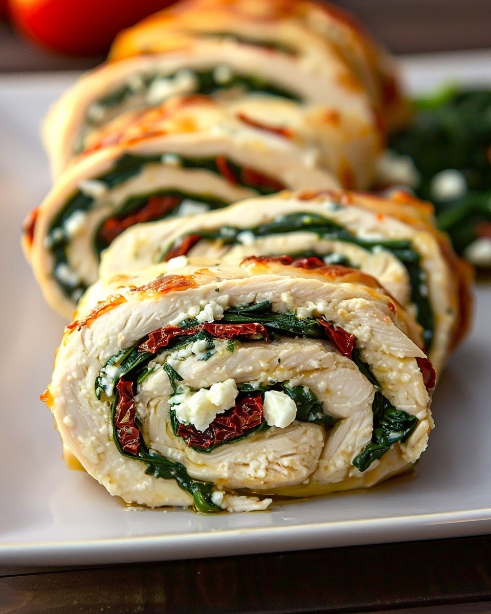 I love how this dish feels special without requiring complicated techniques. The creamy feta and bold sun-dried tomatoes bring rich flavor to every bite, while the spinach adds freshness. The rolled presentation looks impressive on a plate, but it’s just a matter of layering, rolling, and baking. It’s great for dinner parties or just when I want a protein-packed meal that’s not boring. Plus, it pairs well with salads, grains, or roasted veggies.