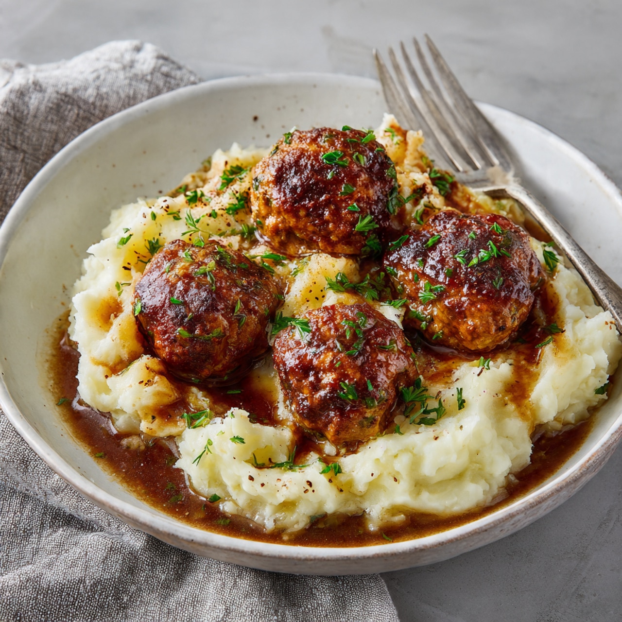 I love how this dish brings together tender, savory meatballs and smooth mashed potatoes in one comforting plate. The gravy is rich and full of flavor, coating each meatball beautifully and soaking into the potatoes just the way I like.