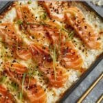 Salmon Sushi Bake is a rich, creamy, and savory twist on traditional sushi—baked in a casserole style and packed with flavor in every bite. It’s layered with seasoned rice, flaky salmon, a creamy mayo mixture, and finished with furikake and a drizzle of spicy sauce. I love serving it family-style with sheets of seaweed for scooping, making it a fun and casual way to enjoy sushi at home.