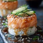 I love how easy and comforting this dish is while still delivering all the classic sushi flavors. There’s no need for rolling or special equipment, and I can customize the toppings however I want. The warm, creamy salmon topping pairs so well with the vinegared rice and crunchy seaweed. Whether it’s for a weekend dinner or a party appetizer, it’s always a hit.