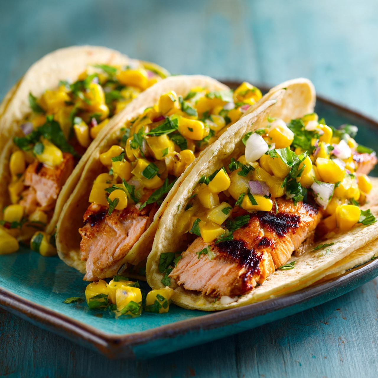 Salmon Tacos with Mango Corn Salsa