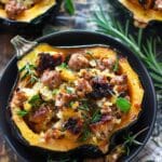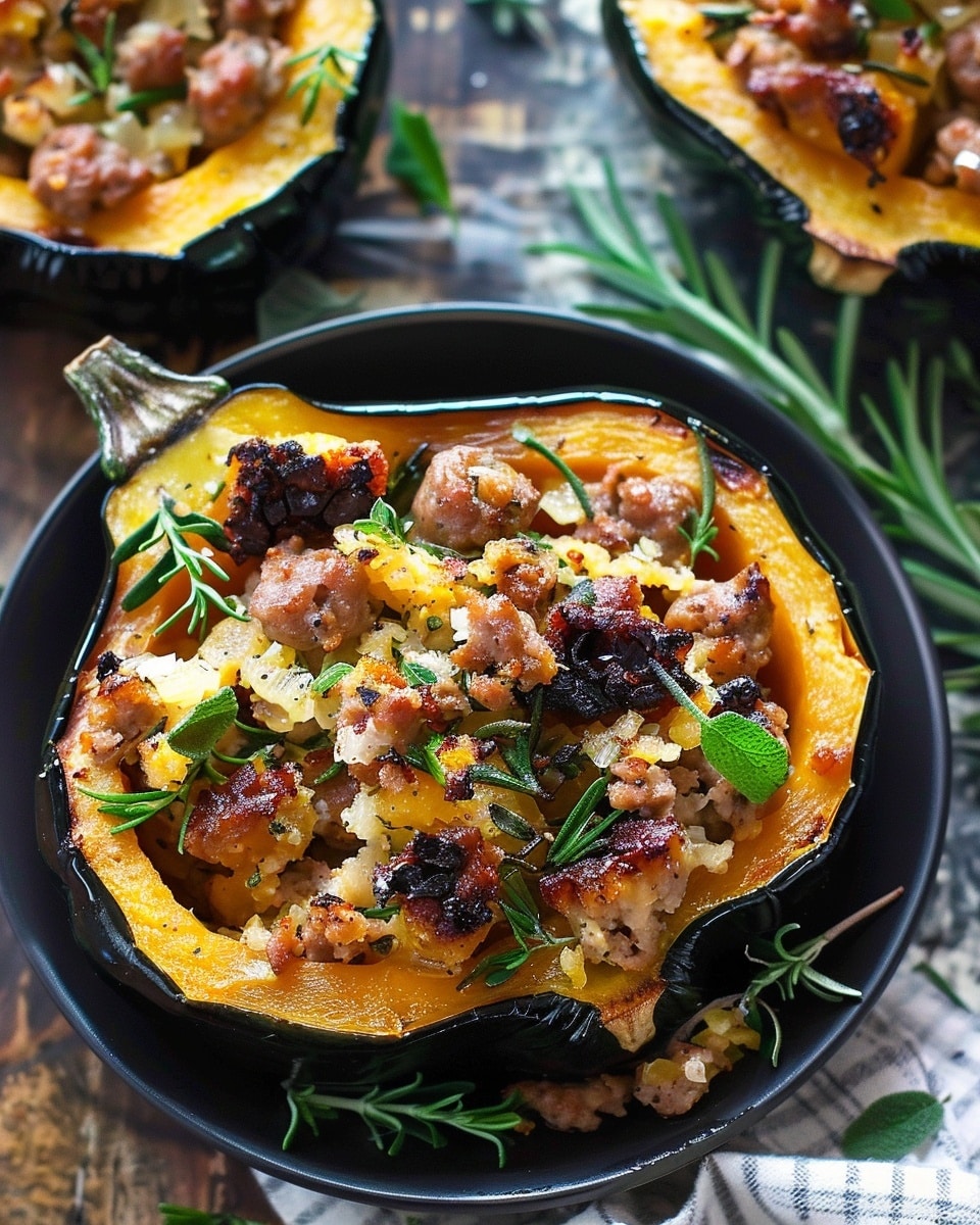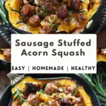 This sausage stuffed acorn squash is a cozy and hearty fall-inspired dish. Roasted acorn squash halves are filled with savory sausage, herbs, vegetables, and optional grains or cheese for a deliciously comforting main course.