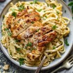 Sometimes I add sautéed spinach, sun-dried tomatoes, or mushrooms to the pasta for extra flavor and texture. If I want to lighten it up, I swap the heavy cream for half-and-half or use less Parmesan. I’ve also tried it with shrimp instead of chicken, and it’s just as good.