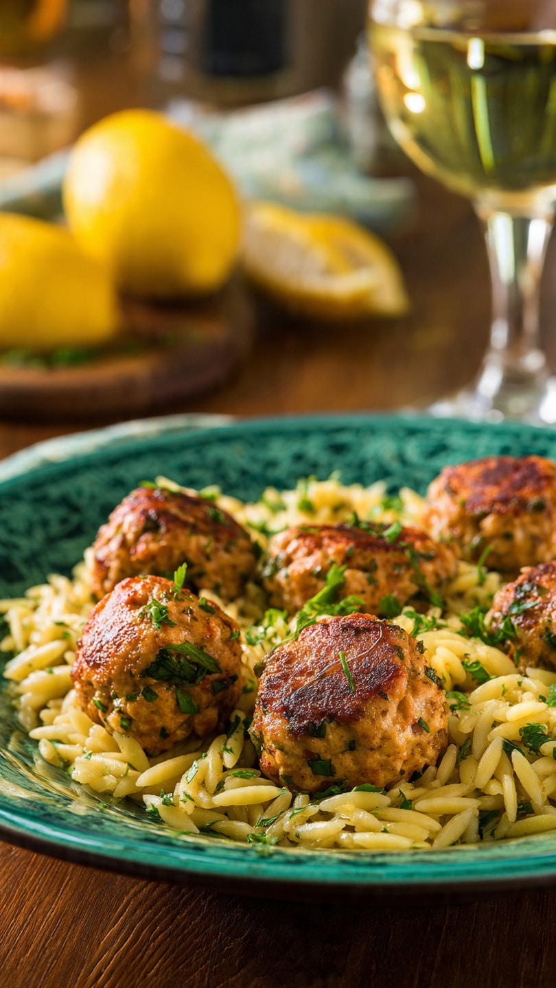 Savory Greek Chicken Meatballs with Zesty Lemon Orzo
