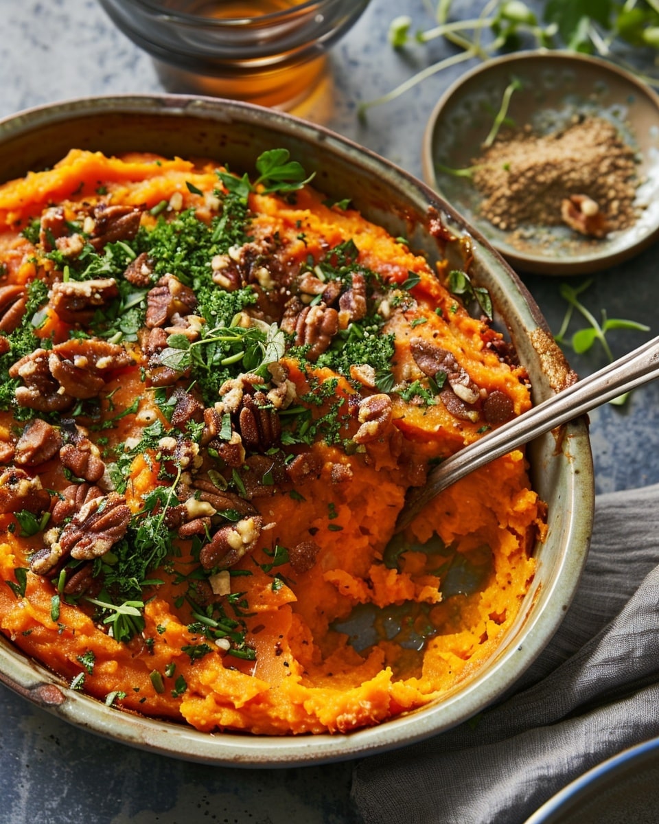 A creamy and flavorful Savory Sweet Potato Casserole made with tender mashed sweet potatoes, sautéed onions, herbs, and melted cheese. This comforting side dish highlights the natural earthiness of sweet potatoes and is perfect for family dinners or holiday gatherings.