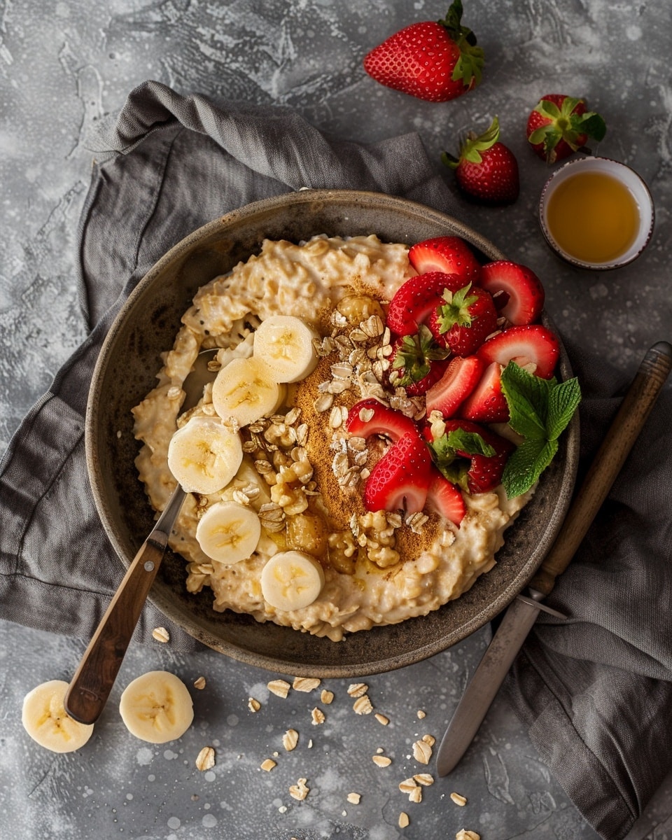 I love this recipe because it’s a creative twist on my usual bowl of oats. It’s incredibly easy to make, uses minimal ingredients, and is endlessly customizable. I can keep it simple with cinnamon and maple syrup, or dress it up with fruits, nut butters, or chocolate chips. It’s also a great option if I want something warm and hearty but don’t want to eat eggs every day.