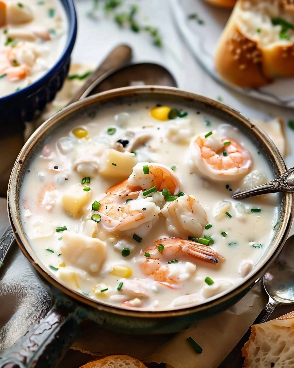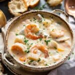 I love how luxurious and satisfying this chowder is, without being overly complicated to make. It’s packed with shrimp, fish, and sometimes scallops or clams, all gently simmered in a creamy, seasoned broth. The potatoes and veggies give it a nice, filling body, while the seafood keeps it feeling light and fresh. It’s the kind of meal I crave when I want something warm and indulgent but still full of real, wholesome ingredients.