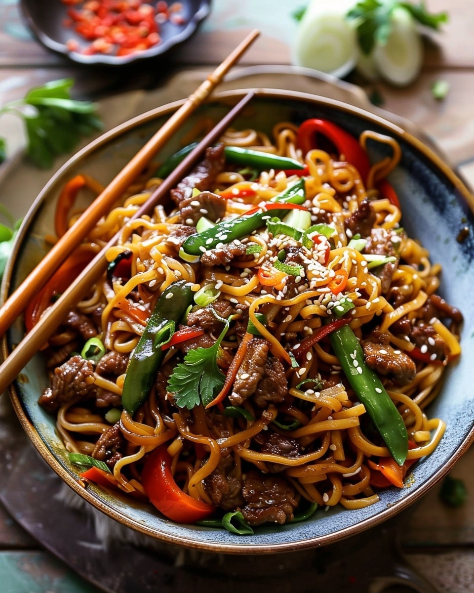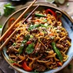 Sesame Beef Stir-Fry Noodles is a fast and flavorful one-pan meal with tender beef, vibrant veggies, and slurp-worthy noodles tossed in a savory sesame-soy sauce. Perfect for a satisfying weeknight dinner or easy meal prep!