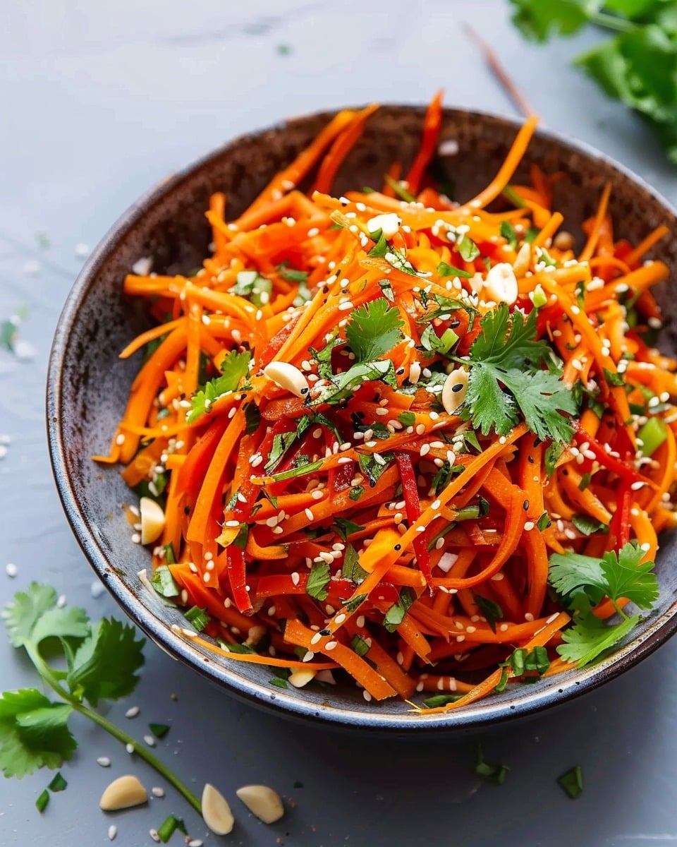 I love how this salad turns something as simple as carrots into a show-stopping dish. The rainbow colors make it look amazing on the plate, and the sesame dressing adds that rich, toasty flavor that balances perfectly with the fresh crunch. It’s a great side dish for just about any meal, and it also works well as a light lunch or snack.