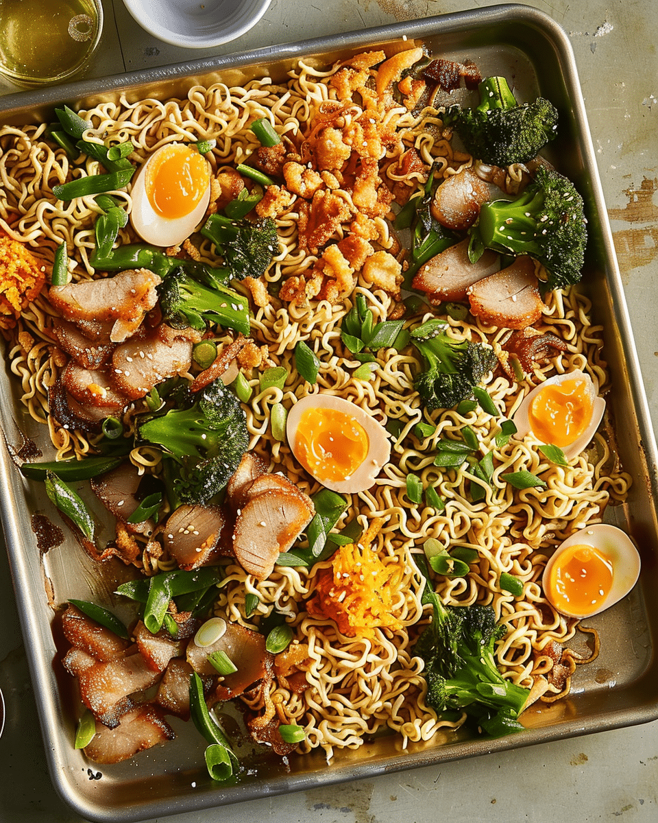 Sheet-Pan Crispy Ramen is a fast, flavorful twist on classic instant noodles. Roasted in the oven with fresh vegetables and tossed in a bold, savory sauce, this one-pan dish delivers the perfect balance of crispy texture and umami flavor.