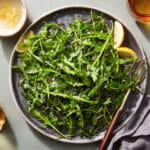 A light and refreshing arugula salad made with peppery fresh greens, a simple lemon and olive oil dressing, and shaved parmesan cheese. This quick and versatile salad pairs perfectly with grilled meats, pasta, or roasted vegetables.