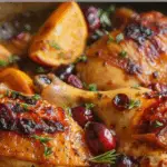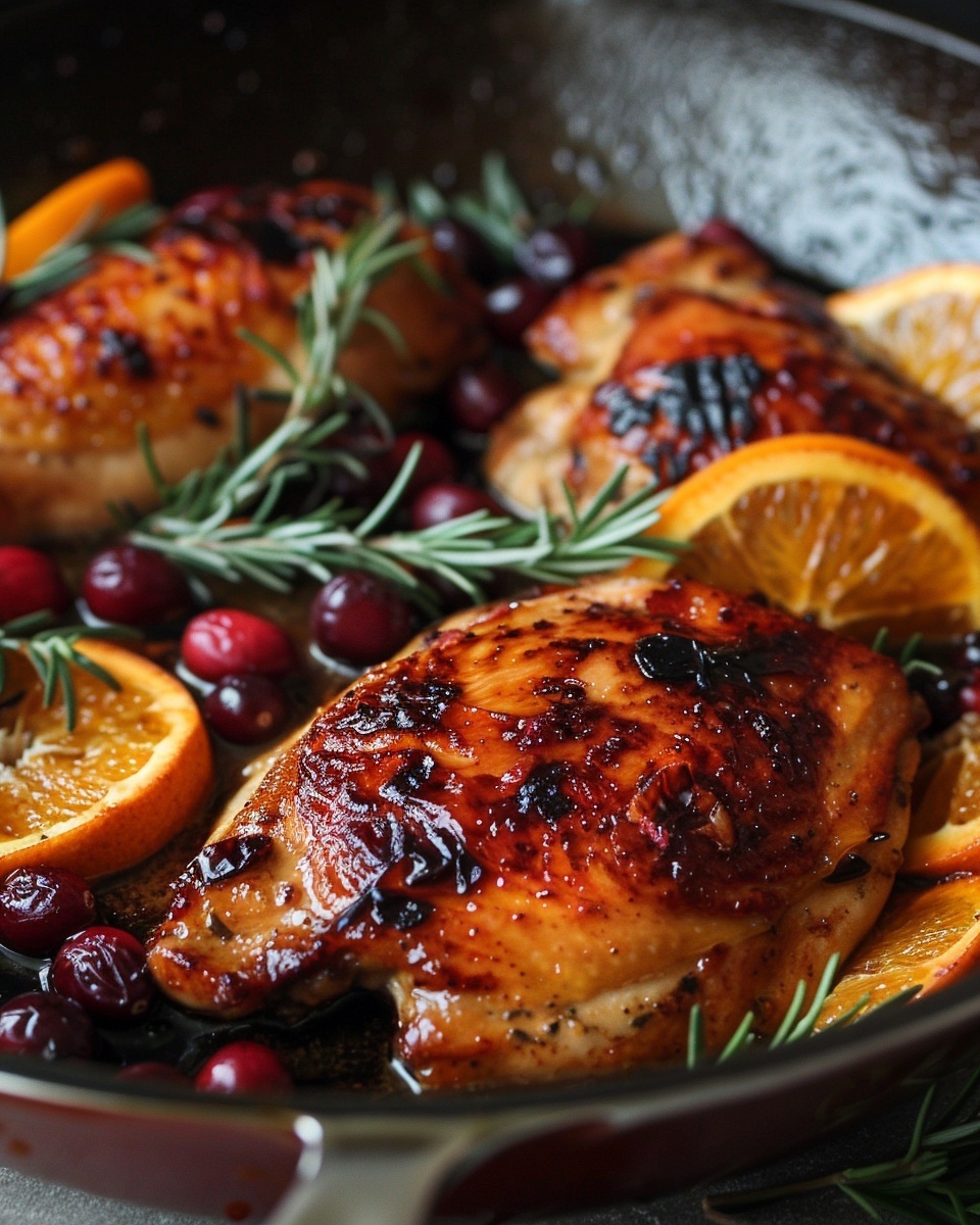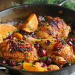 Skillet cranberry orange chicken is a one-pan dish that features golden-seared chicken simmered in a tangy, sweet glaze made from cranberries, orange juice, and honey. It’s festive, flavorful, and perfect for both weeknights and special occasions.